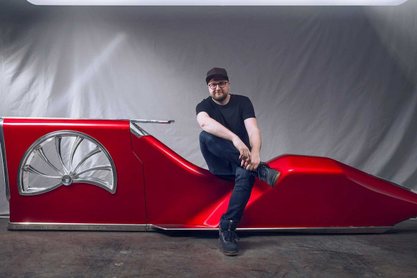 The Guido's bodywork is entirely constructed of aluminum and was handcrafted. A 17-inch rear tire, adjustable suspension, and a fully functional electric engine and battery are hidden beneath the sleek aesthetics.