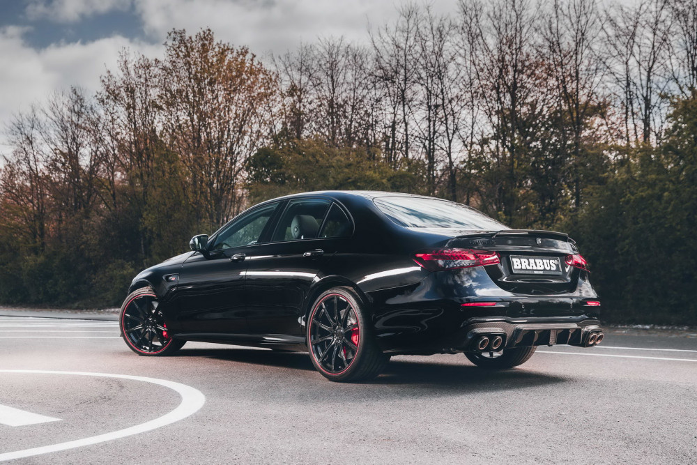 The tuned AMG E63 version features a front apron, trunk lid spoiler for the four-door model, and carbon fiber diffuser insert. Brabus also put his branded 21 inches wheels. For a much stance look is the optimized air suspension that lowers the ride height by 10 or 20 mm (0.4-0.8 in) depending on the selected driving mode.