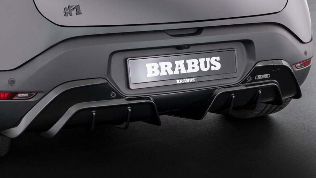 For starters, a redesigned garnish for the bumper intakes and a more noticeable splitter significantly reduce lift on the front axle at high speeds, according to the manufacturer. Meanwhile, at the back, we can see an updated diffuser with the Brabus logo and the big rear wing.