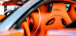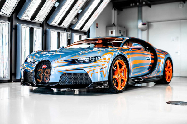The name, which translates as "light waves," alludes to the exquisite orange stripes that contrast with the blue base hue. The hand-painted design is meant to mimic the way light bounces off the car's exterior. According to the manufacturer, the car can easily hit 273 mph with its bodywork and the 8.0-liter 16-cylinder engine's 1,578 horsepower.