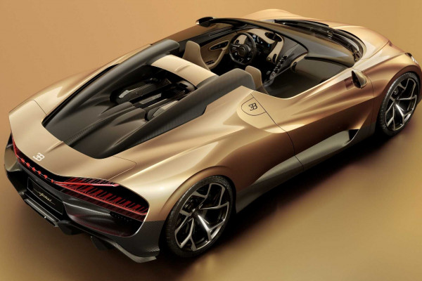 Inside the cabin, Bugatti has opted for a two-tone leather design that mirrors the unique golden era aesthetics, complete with a gold-wrapped EB logo on the steering wheel.
