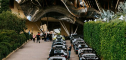 On the second day, the convoy headed to the Atlantic Pyrenees, reaching the Roncevaux Pass, stopping in Etxarri Aranatz for lunch, and then crossing the peaks of France and Spain to the Marqués De Riscal Hotel in the La Rioja Alavesa wine region.