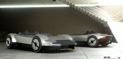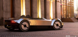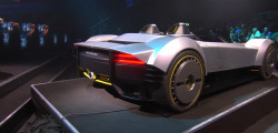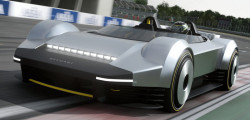 Presented in a silver hue reminiscent of the aluminum watch, the Bulgari Aluminum Vision GT exhibits a pure "barchetta" form. The digital car also features a unique front light bar, emerging headlights, and high wheel arches reminiscent of classic '60s racecars like the Maserati Birdcage.