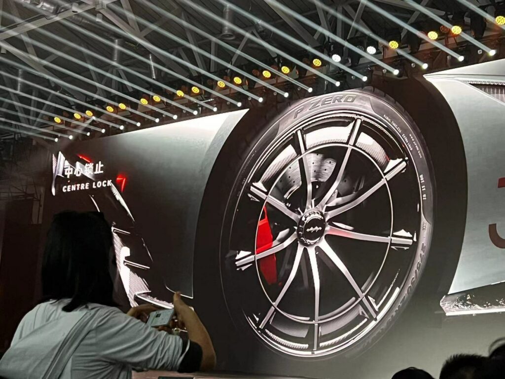 The company has also developed a set of concept wheels with center locking mechanisms and opted to use rear-facing cameras instead of conventional wing mirrors. In the middle of the vehicle rests the cockpit, while the back has two buttresses, a sizable diffuser, and a pair of modern taillights.