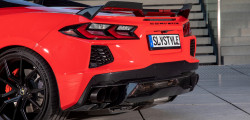 In addition, SlyStyle added new side skirts with prominent fins and a set of modest aerodynamic canards to the bumper. The C8 Corvette also got a new rear wing and diffuser that are TÜV certified for use in Germany.