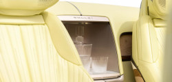 The rear center console of the Cadillac may accommodate a leather-wrapped container housing four 3D-printed bird calls. It sits between the back seats, features a power glass door, and sits beneath the built-in beverage cooler. Moreover, Cadillac resurrected the Manila Cream paint job (from 1957 and 1958) for the concept's 23-inch aluminum wheels.