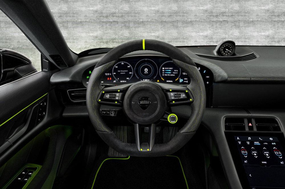 The electric Porsche's powertrain and suspension were left unchanged by the tuner. The fastest Taycan Turbo S delivers up to 750 hp (560 kW / 761 PS) and 774 lb-ft (1,050 Nm) of torque, letting it to accelerate from 0-60 mph (0-96 km/h) in 2.6 secs and max speed of 260 km/h (161 mph).