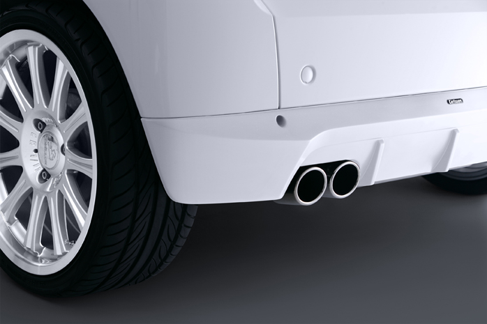 Their tuning includes a variety of decorative elements applied to the exterior, a new bi-color paint, restyled front and rear bumpers, a mini-spoiler on the tailgate, a new suspension with lower clearance, and huge 17-inch wheels (for a small car ) with chrome spokes! Even the exhaust system was replaced with a sportier one.