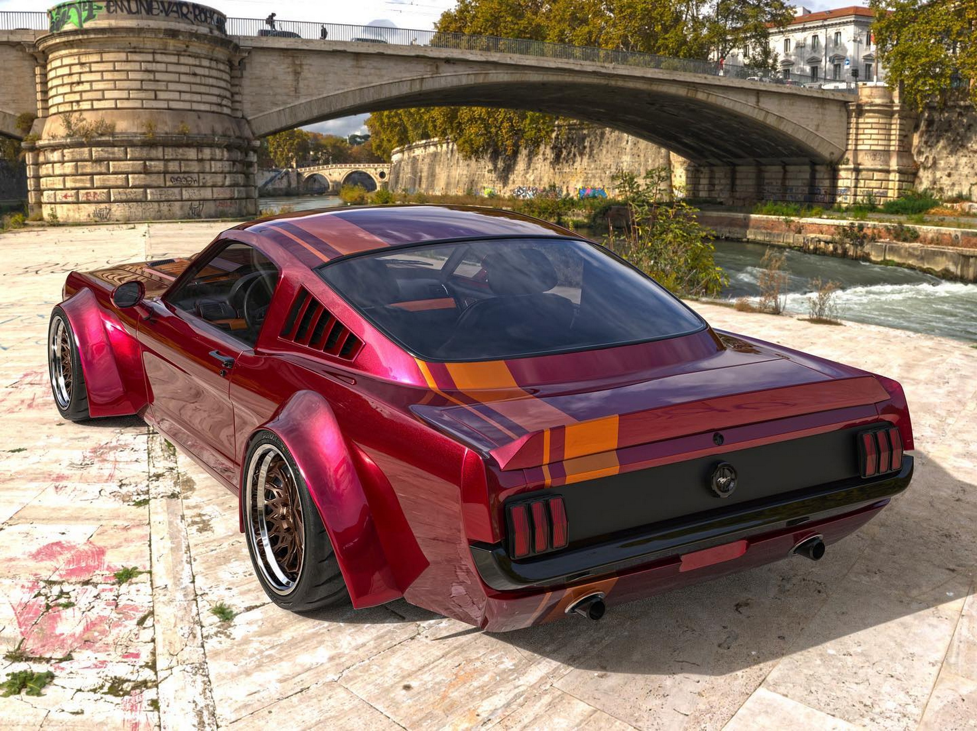 This rendering by Abimelic Design, commissioned by Custom FN Customs, is a great illustration of how far custom automobile design has come. The majority of the body is Mustang. It's definitely based on a 1965 model, according to the designer, and the big fender flares offer it a much more contemporary aspect.