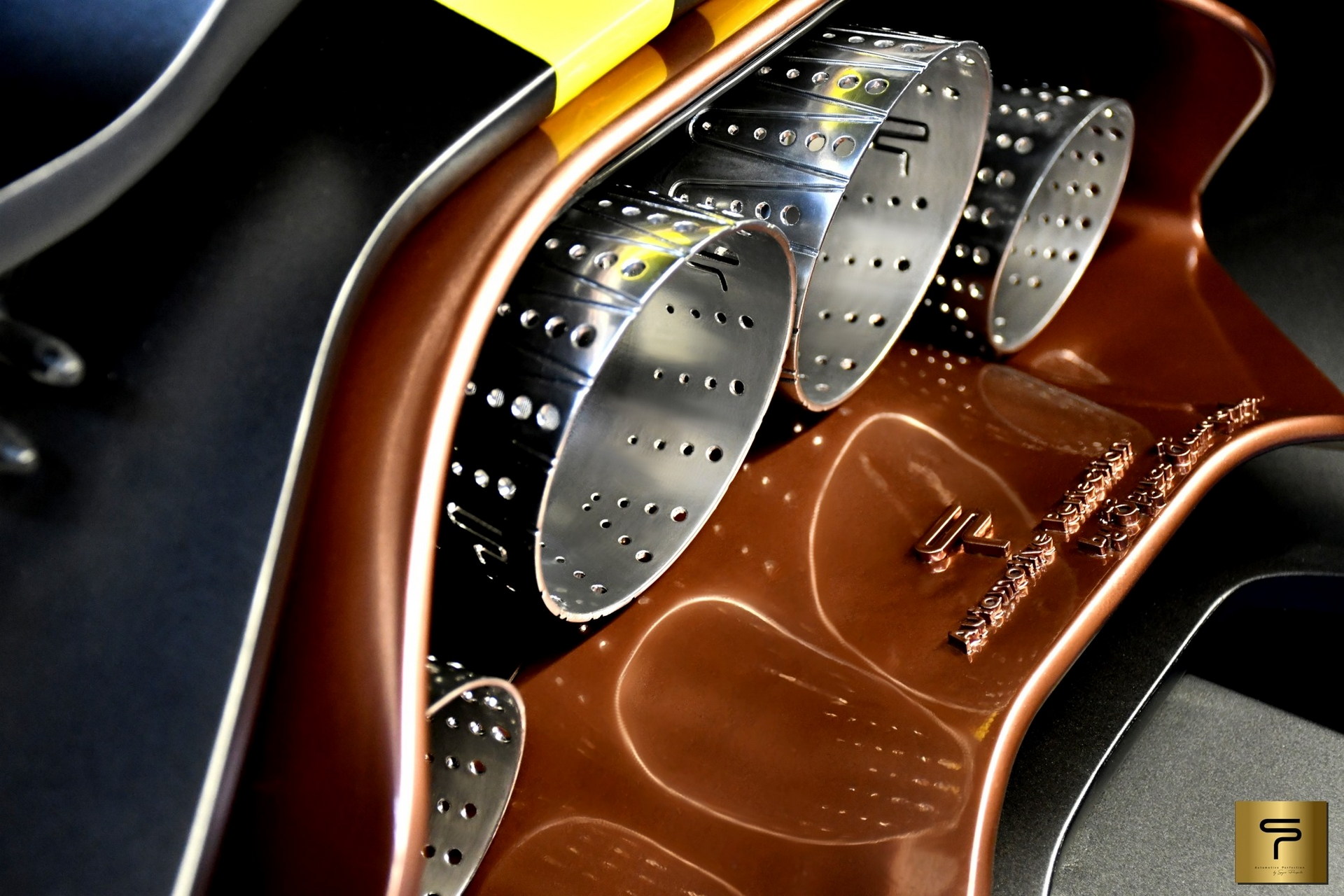Inside, Chaos has a yoke-style steering wheel with a touchscreen, a big touchscreen in front of the passenger, a few conventional buttons, and a heads-up display. Almost every inside component is made of carbon fiber, zylon, titanium, magnesium, or Alcantara.
