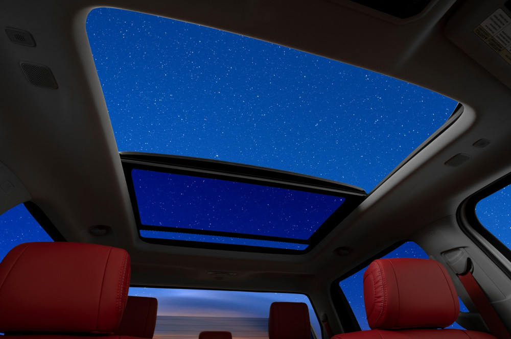 While that is still months away, the company has published a new interior video that shows the truck will have a sliding back window. A panoramic moonroof and red leather or SofTex seats with matching seat belts are also visible. There's not much else to look at, but the new 2022 Toyota Tundra has a contoured ceiling to let rear-seat passengers have more headroom. Speakers and microphones appear to be installed in the headliner, as well.