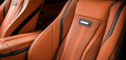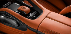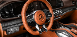 The interior boasts the same stunning orange finish, from the plush seats to the sleek door cards. As we shift our focus, we can appreciate the stunning dash topper, the ceiling, and other elements, all adorned in a shade of brown. Carbon fiber trim runs across the dashboard, Alcantara covers the roof, and both smooth and perforated leather cover the steering wheel. Last but not least, the interior of the Mercedes-Benz GLE Coupe is adorned with sleek metal badges, adding a touch of sophistication to the design.