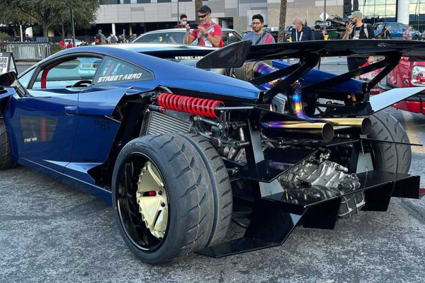 The owner claims that the project cost eight times as much as he had anticipated and they rebuilt the engine three times before finally installing it in the Lamborghini Gallardo. It took two years to complete the conversion, and last year was the first time it was shown at SEMA.