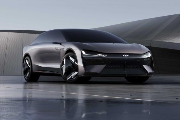 Sculpted cooling intakes flank the active grille below, and the wheels—21 inches up front and 22 inches in back—appear to belong on a vehicle far sportier than a concept car. The concept car's sleek silhouette is further enhanced by frameless windows and door handles that seamlessly blend into the body, while the large rear wing conveys a sense of seriousness. Fulwin logos show up in the headlights, on the wheels, and across the full-width LED taillights, reinforcing its identity.