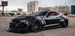 It seems like this Camaro is built around the $4,600 Streetfighter LA widebody, a bolt-on that has the standard fender flares. Yet it now fits the shape of the wearer's body. Installing the kit entails sanding down the area, using Bondo, and then repainting or wrapping the item.