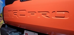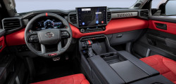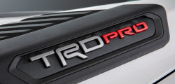 Embroidered “TRD Pro” seats with a camouflage design are standard inside. In addition, the dashboard has large “TOYOTA” writing as well as alloy pedals. The TRD Pro comes equipped with 2.5-inch FOX internal bypass shocks with piggyback reservoirs for better off-road handling, as well as a redesigned front bumper. On-road comfort is improved by using a novel polytetrafluorethylene-infused lubricant.