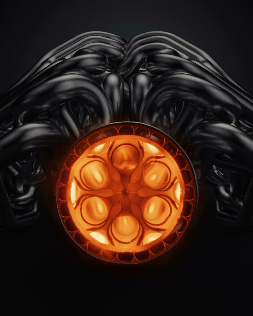 We first noticed the hypercar's headers and exhaust are perfectly symmetrical, with a single collector feeding into what should be two tailpipes.