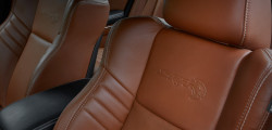 Hammerhead Grey Laguna leather seats, hood, and decklid stripes, blue and yellow brake calipers, and Warp Speed Satin Carbon and Low Gloss Granite 20-inch wheels are all exclusive Jailbreak stuff.