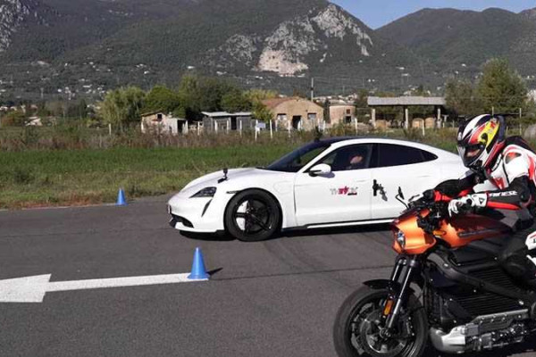 Drag Race: Porsche Taycan vs. Harley-Davidson LiveWire