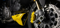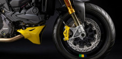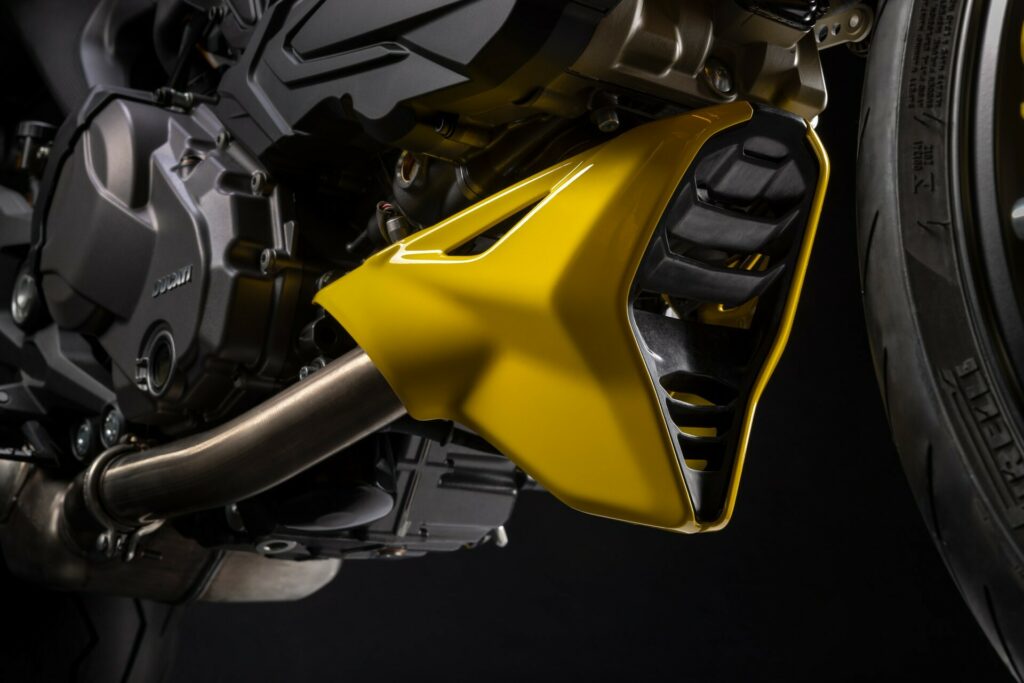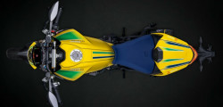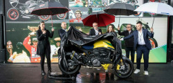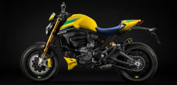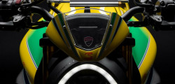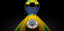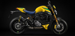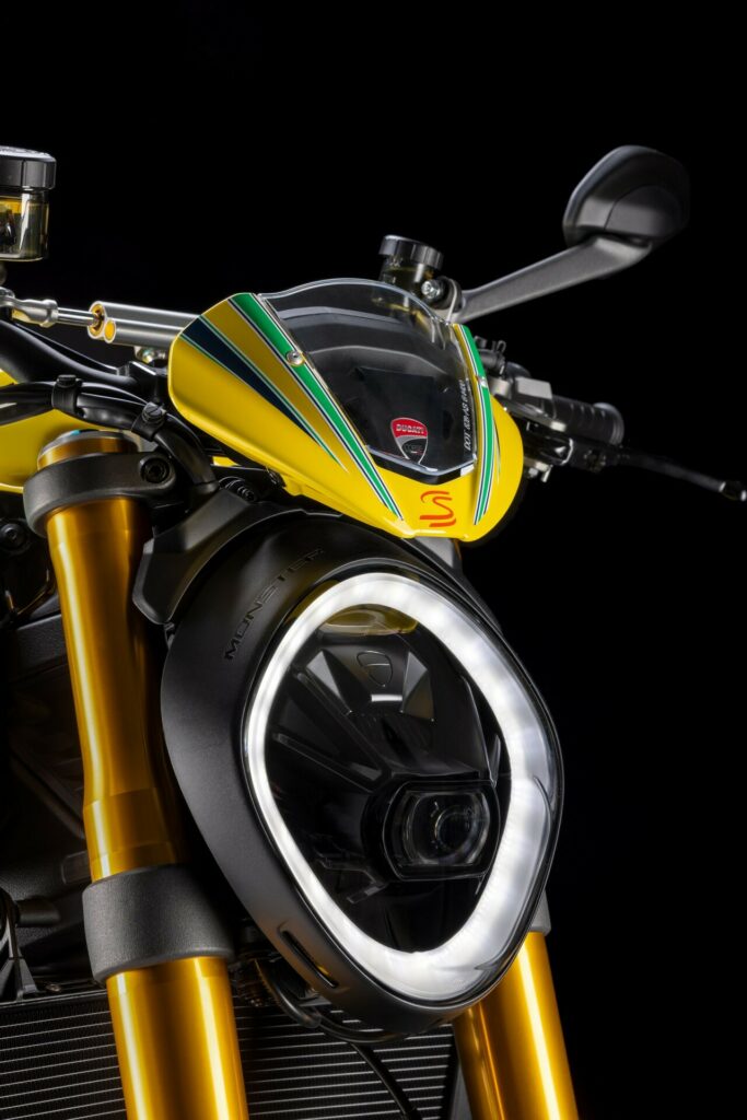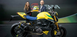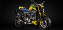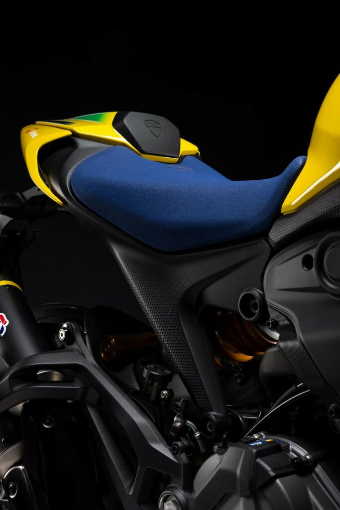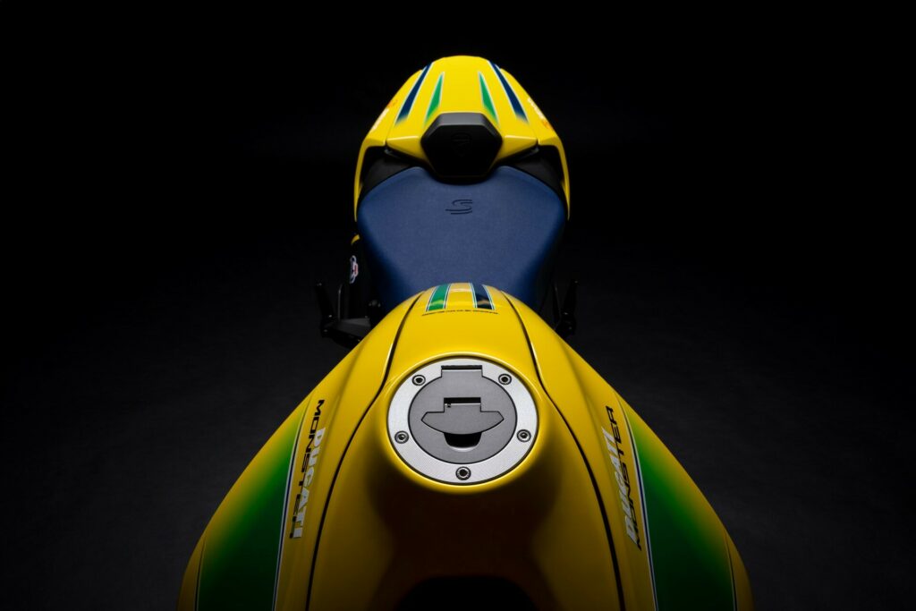 The Testastretta two-cylinder engine generates 110 horsepower. Buyers will also discover a fully adjustable Öhlins suspension and a Brembo brake system with yellow calipers. Limited to 341 pieces, the number honors Senna's three world titles and forty-one first-place finishes.