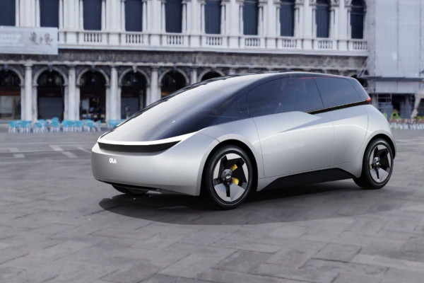 Ola's automobile has a pillar-free appearance because of an aerodynamic and heavily curved front windscreen that blends with the rest of the greenhouse. It has four doors, a hatchback layout, and aero wheels, as well as a full-width LED bar.