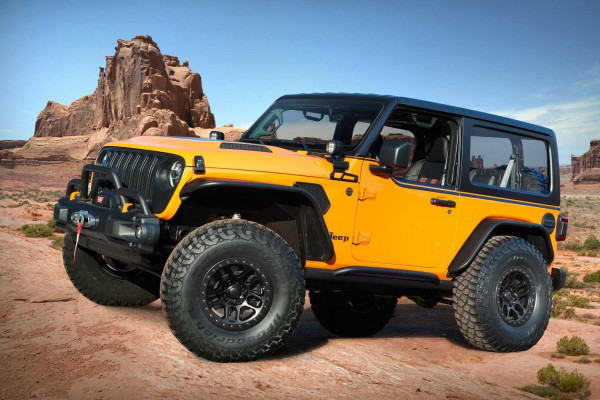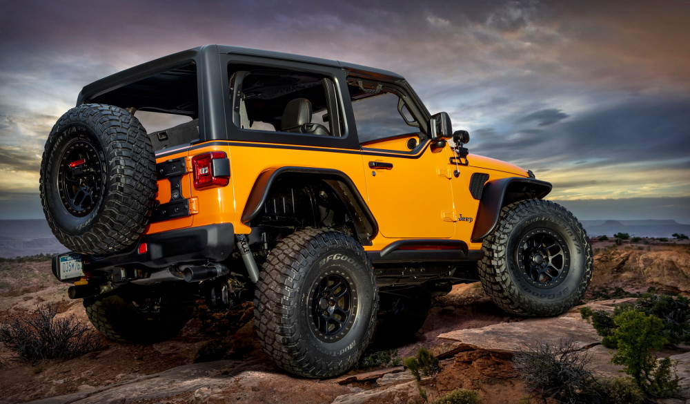 The Jeep Wrangler Orange Peelz, the off-road is presented in a striking light orange accentuated by the Corning Gorilla Glass windscreen. This concept sports a half-doors prototype without side and rear windows, removable sunroof, trail lights, unique badges and graphics, a 2-inch lift kit, and M/T tires. After a closer look at this concept, this one is similar to a regular two-door Wrangler powered by a 3.6-liter Pentastar V6, hooked up to the eight-speed automatic gearbox delivering up to 285 ho and 353 Nm of torque.
