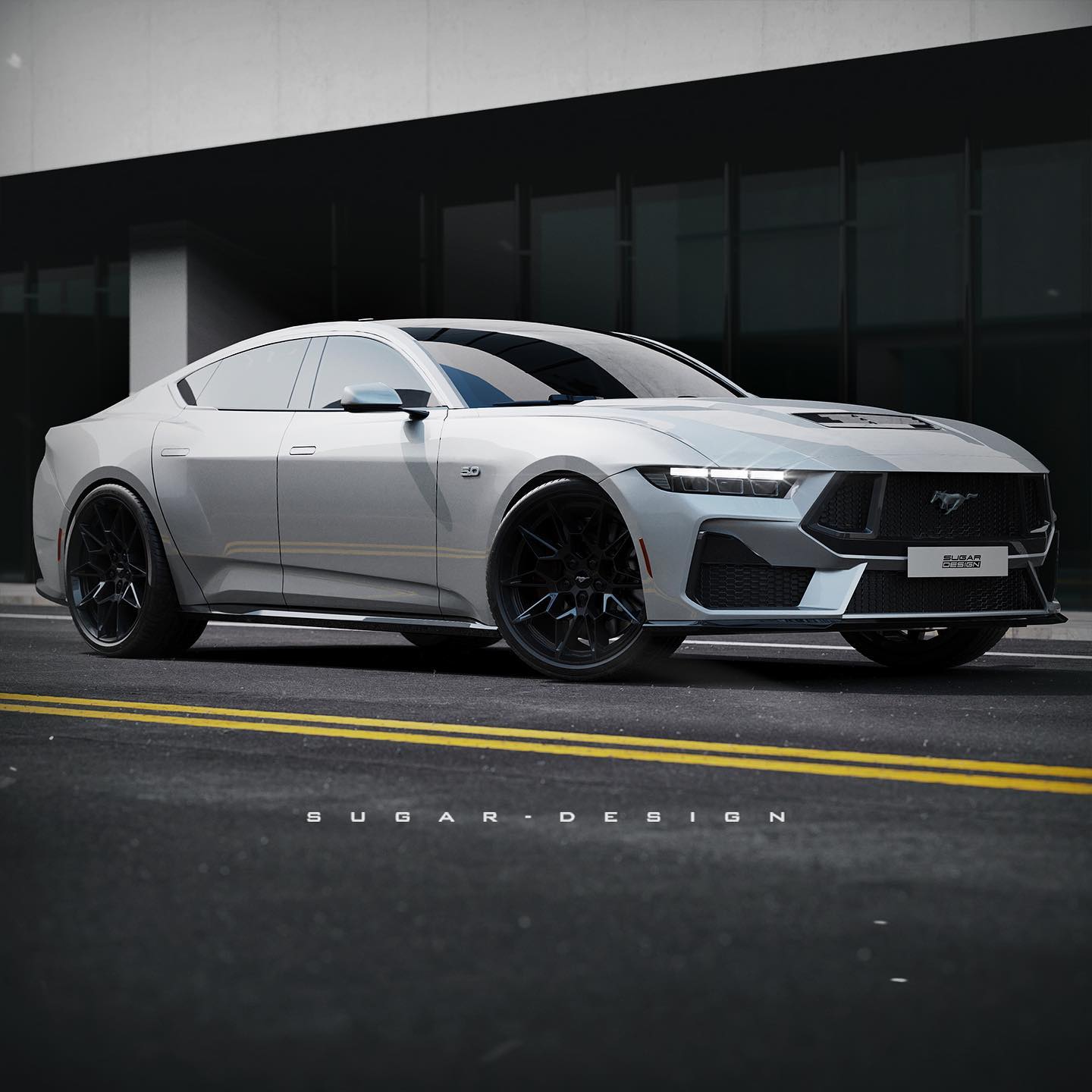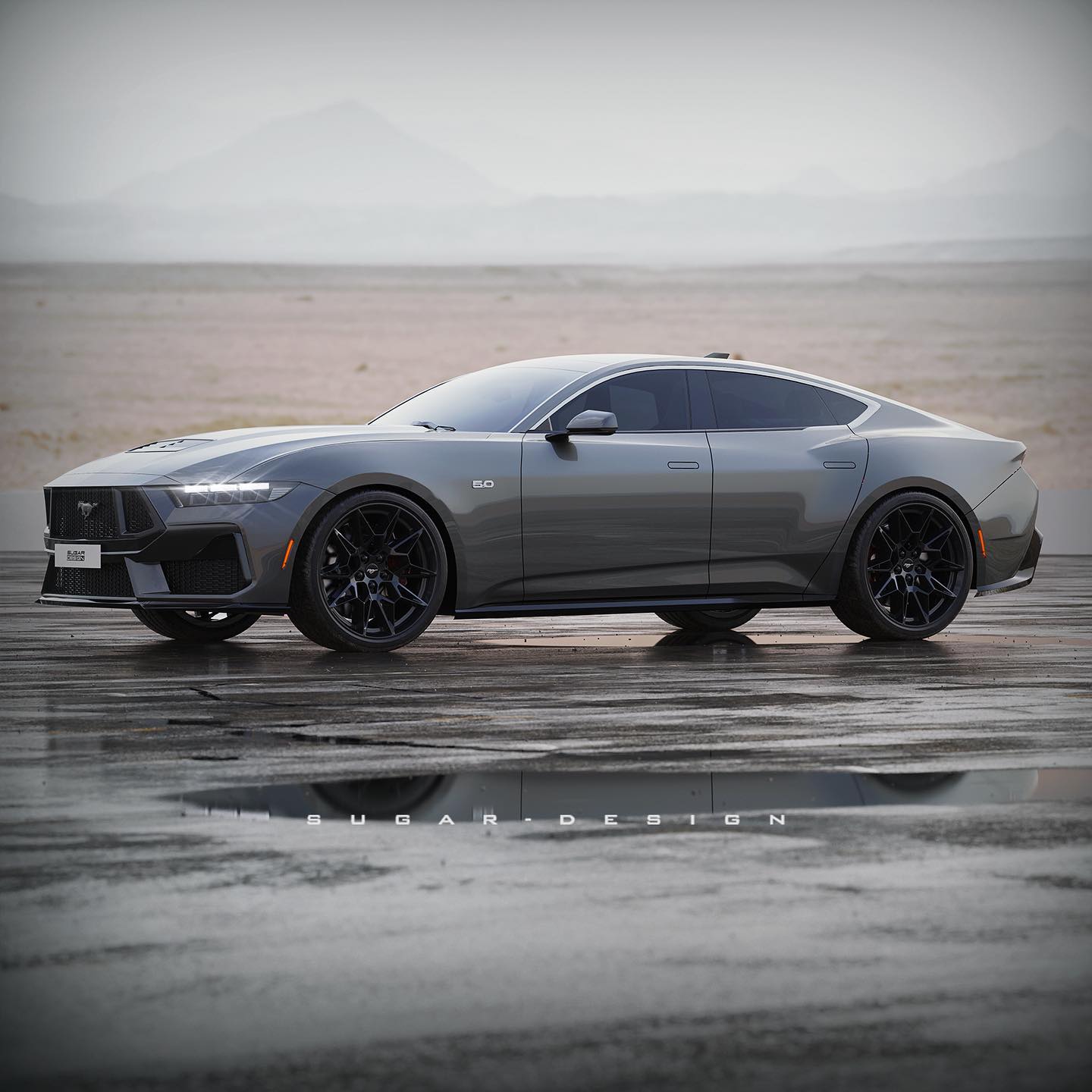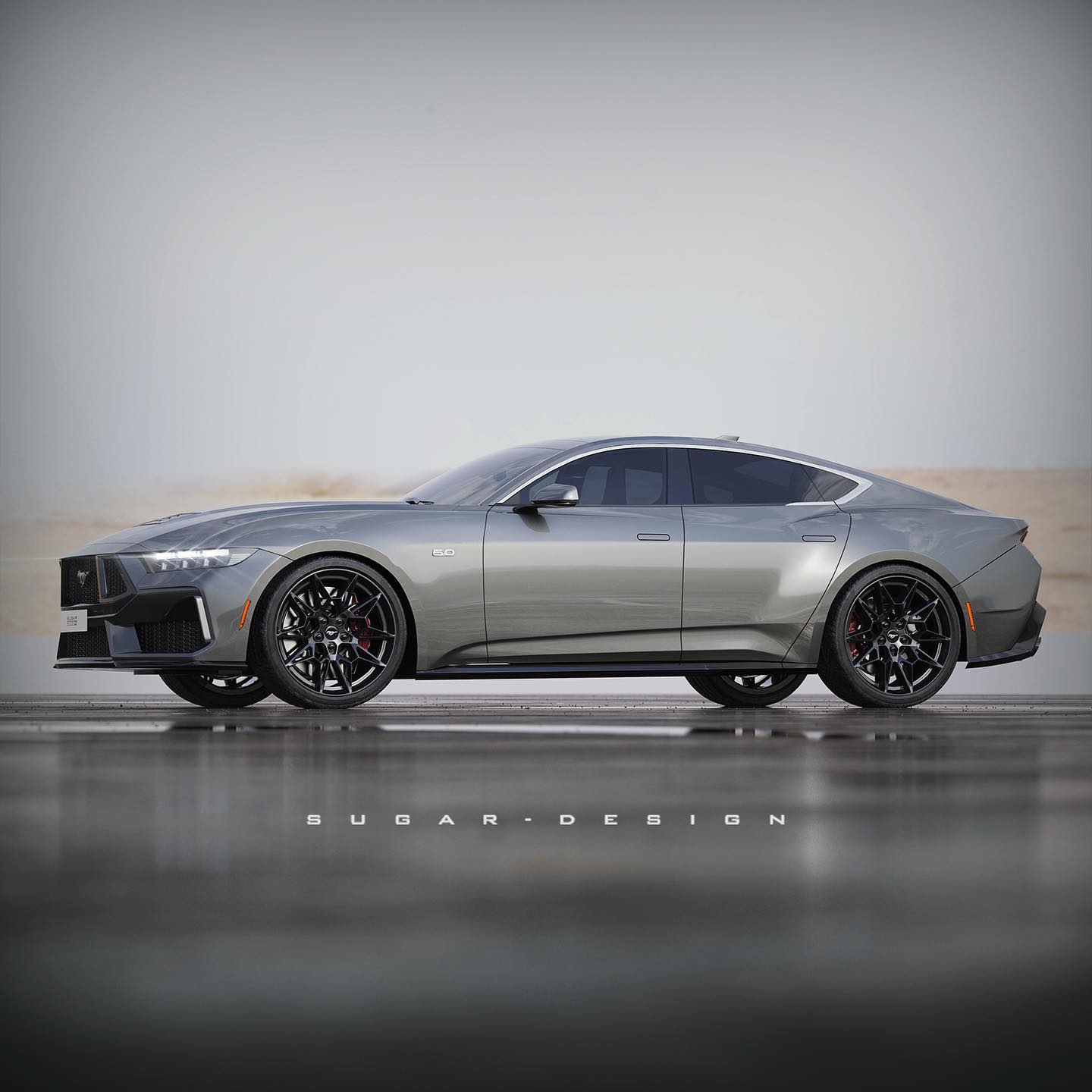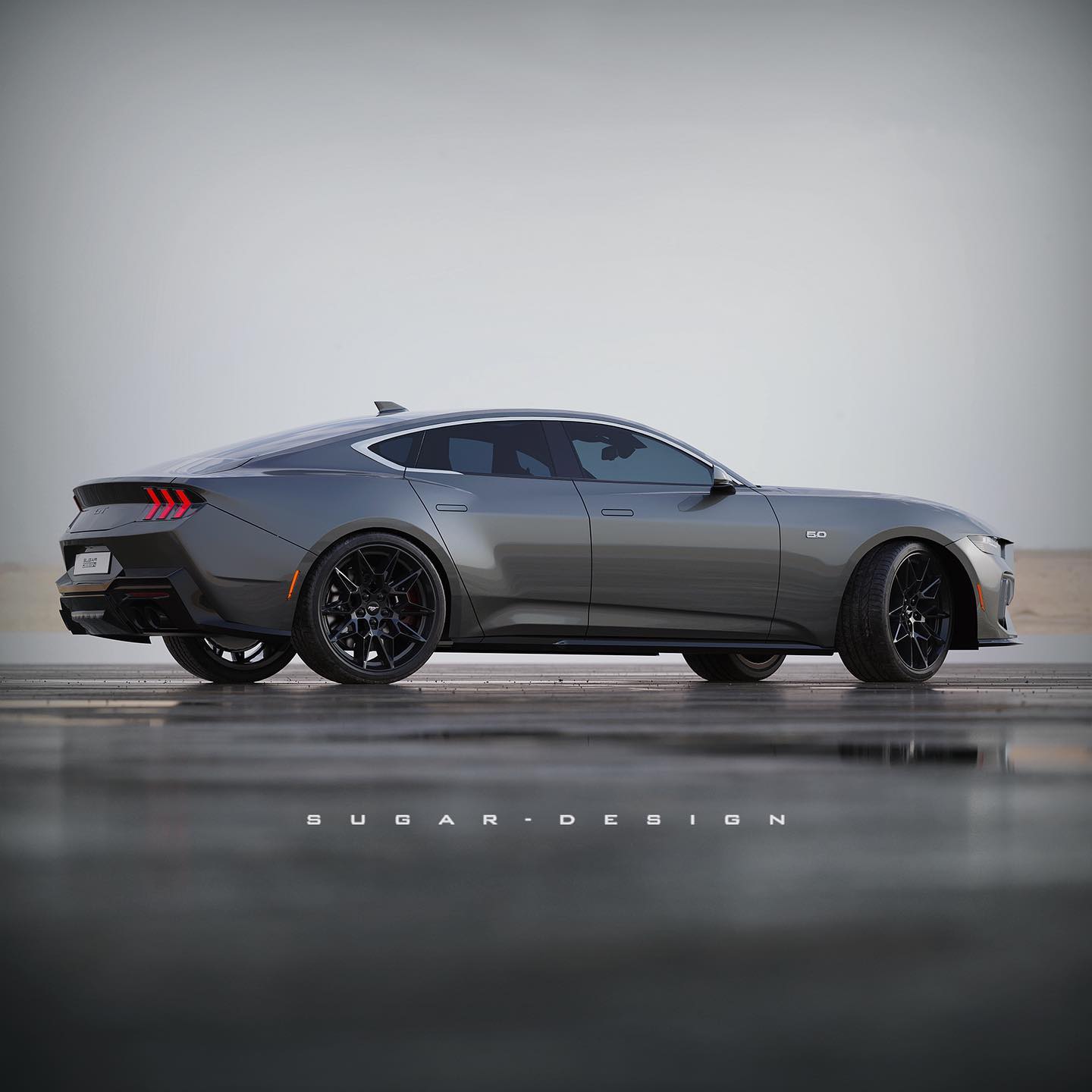 During the unveiling of the seventh-generation pony car, Ford stealthily released a drawing of such a vehicle. After seeing this drawing, Sugar Design was inspired to create a concept for what he thought a Mustang sedan may look like.