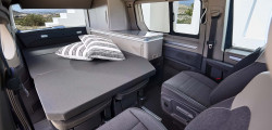 Two sliding doors with mosquito nets and a rooftop tent are standard features of every model. For Volkswagen vehicles, a new awning will be available as an option in certain regions and as standard equipment in others.