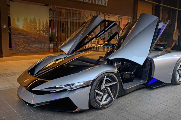 Sharp creases in the bodywork, gullwing doors, flying buttresses, and a retractable roof-mounted aerobrake distinguish the full-scale prototype. The hypercar is 4,670 mm (183.9 inches) long, 2,080 mm (81.9 inches) wide, and 1,145 mm (45.1 inches) height, with a curb weight of 1,350 kg (2,976 lbs), according to Car News China.