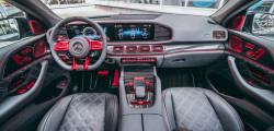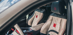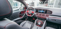 Brabus has incorporated excellent leather upholstery in any requested hue, as well as Alcantara, noble-wood, and carbon fiber to the interior. The demonstration car has red highlights that blend with the Superior Gray paint.