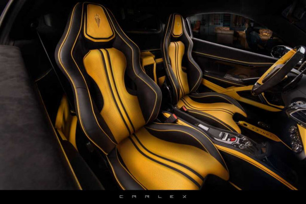 The exterior of this Ferrari 458 Italia supercar, which is painted black, has not been modified in any way, but the inside has received much attention from Carlex Design. A new set of 20-inch alloy wheels is the only visible change to the vehicle's exterior.