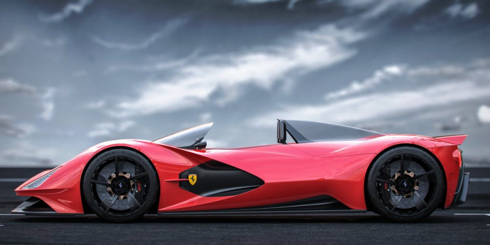 The design of the car is rather extravagant, with a glass engine hood, side air dockets of impressive sizes, and a choice of lines from Ferrari models, retro and modern, like 458 Italia, the modern F1 racing cars and F40.