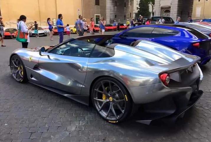 Ferrari F12 TRS in beautiful Chrome Silver seen in Rome!