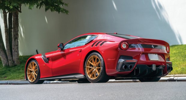 The F12tdf is a track-only powerful vehicle that gets its juice from a naturally aspirated 6.3-liter V12 good for 770 hp. It can get to 62 mph in 2.9 seconds and has a top speed of 211 mph.