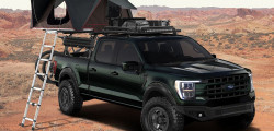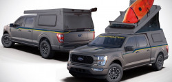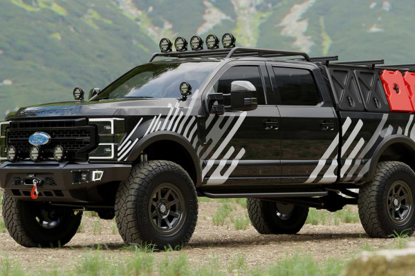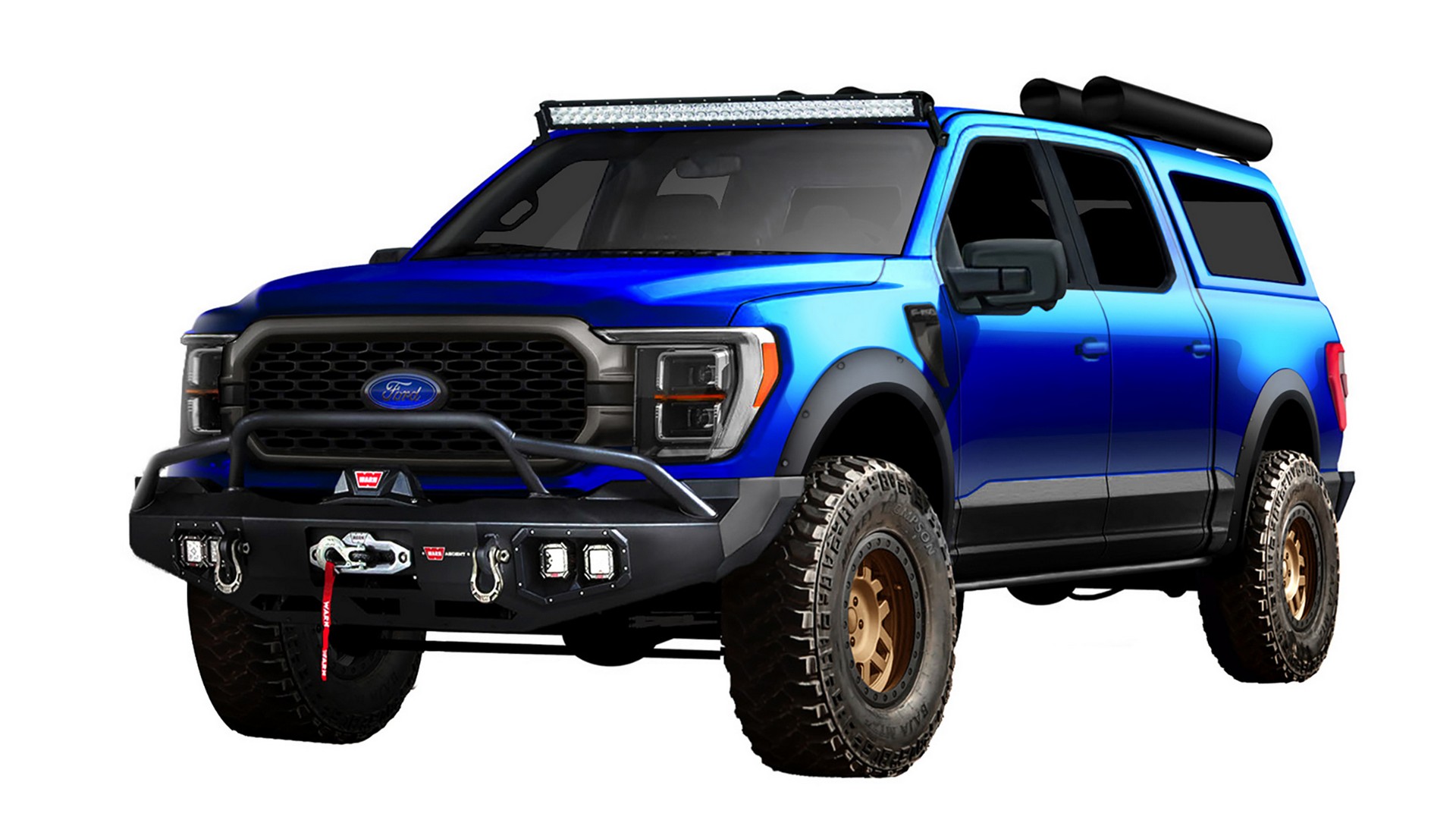 Other Ford pickups on display will include two Ranger models and six F-Series cars. In terms of features, the most noticeable Skyjacker Ranger has heavy-duty bumpers, a Warn winch, and a six-inch elevation on the front. Auxiliary lighting, a cat-back exhaust, and an EcoBoost motor with a Power Pack performance tuning are also included in the model's specifications.