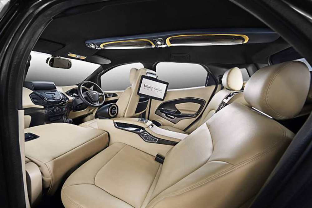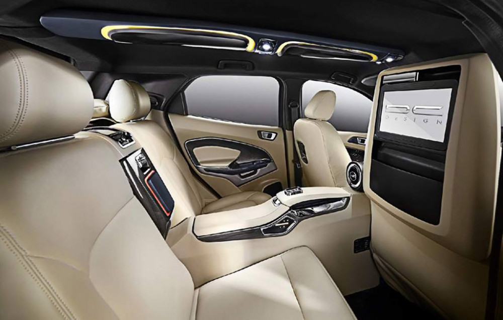 Inside, the DC Design has transformed the SUV Ford EcoSport into a car with five seats in a 2+2 seats model by removing the passenger area in the middle of the rear seats. The Indians mounted a screen for the infotainment system, seats which tilts, ambient lights, wooden items for the board and cream leather for the upholstery. So, the SUV based on the Ford Fiesta can now boast that it has something in common with the premium luxury cars like the most expensive Audi, BMW or Mercedes-Benz.