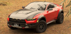 They installed additional LEDs in the grille and a custom bumper up front that mimics the design of the Ford Ranger Raptor. On the other hand, the roof and the tailgate now have a matte black coating. As a finishing touch, a new wing, skid plate, and Raptor R writing have been added. It would be great if this Ford Mustang Raptor R existed in the real world, but for now it remains a figment of designer's imagination.