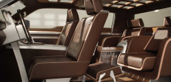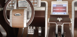 The Super Chief has a very wide cabin, enriched with wooden details, aluminum, and leather, all of that enhanced with a glass roof. When inside this Ford, you'll feel like you have just entered a glamorous coffee shop.