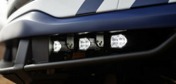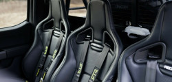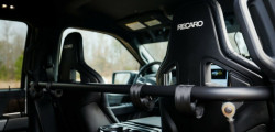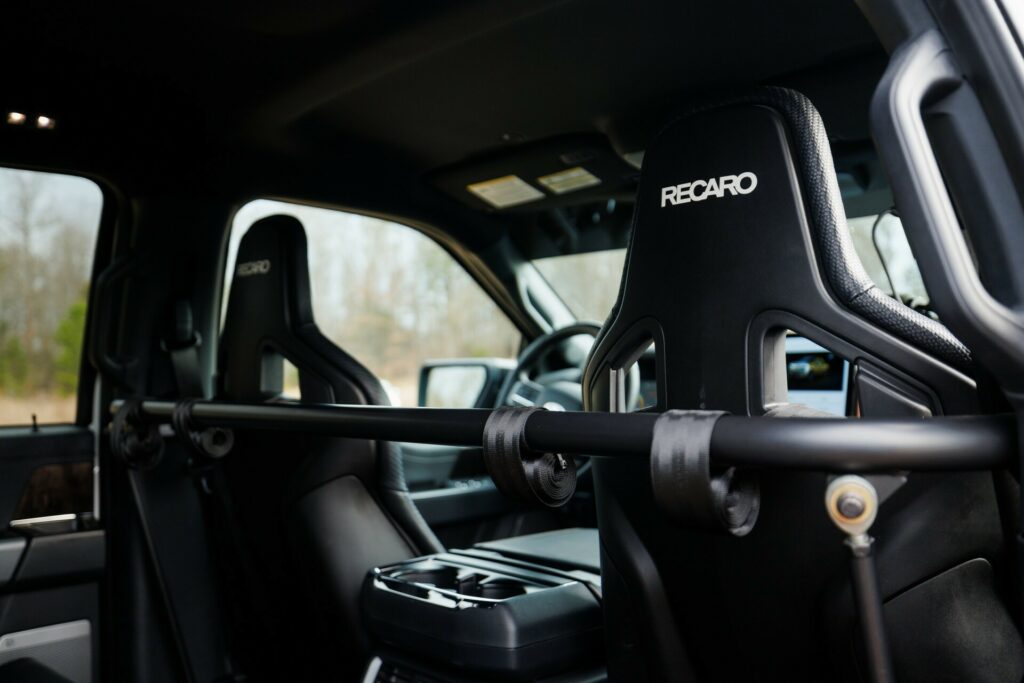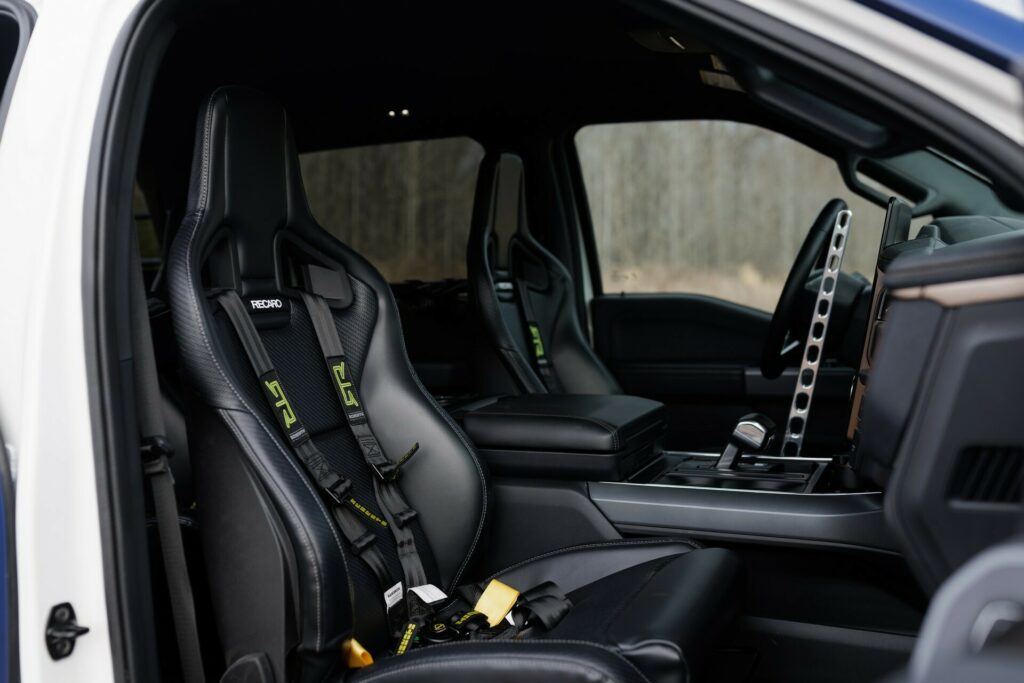 The upgrades include 18-inch wheels with 37-inch Nitto Ridge Grappler tires, a bed-mounted chase rack housing two spares, and a cabin equipped with five Recaro Sportster ORV seats featuring six-point harnesses. The modified suspension, 3-inch Fox internal bypass shocks, and an increased track of 80 inches promise exceptional off-road capabilities with 13.5 inches of front clearance and 11 inches at the rear, offering up to 13 inches of wheel travel.
