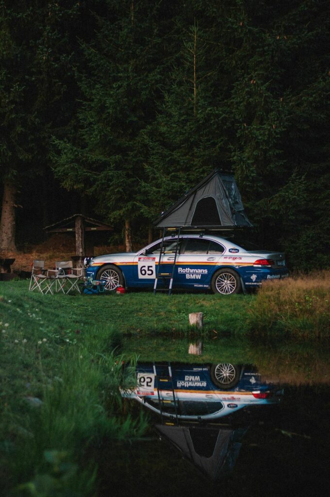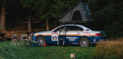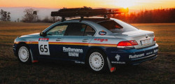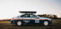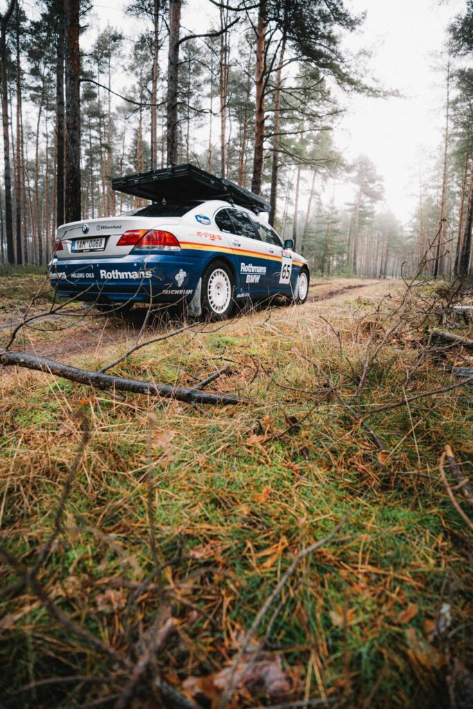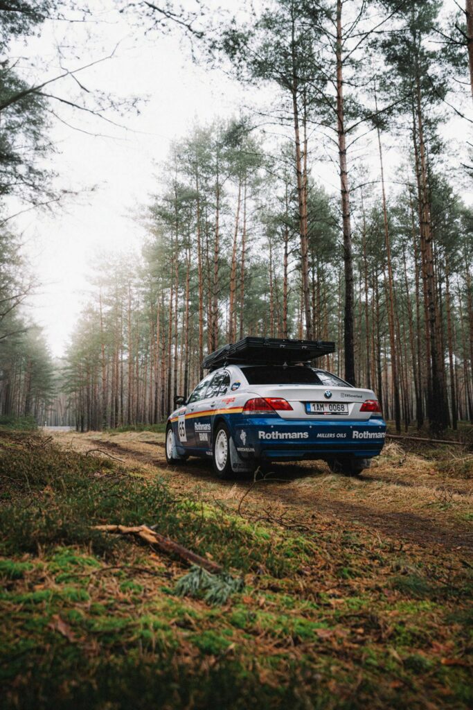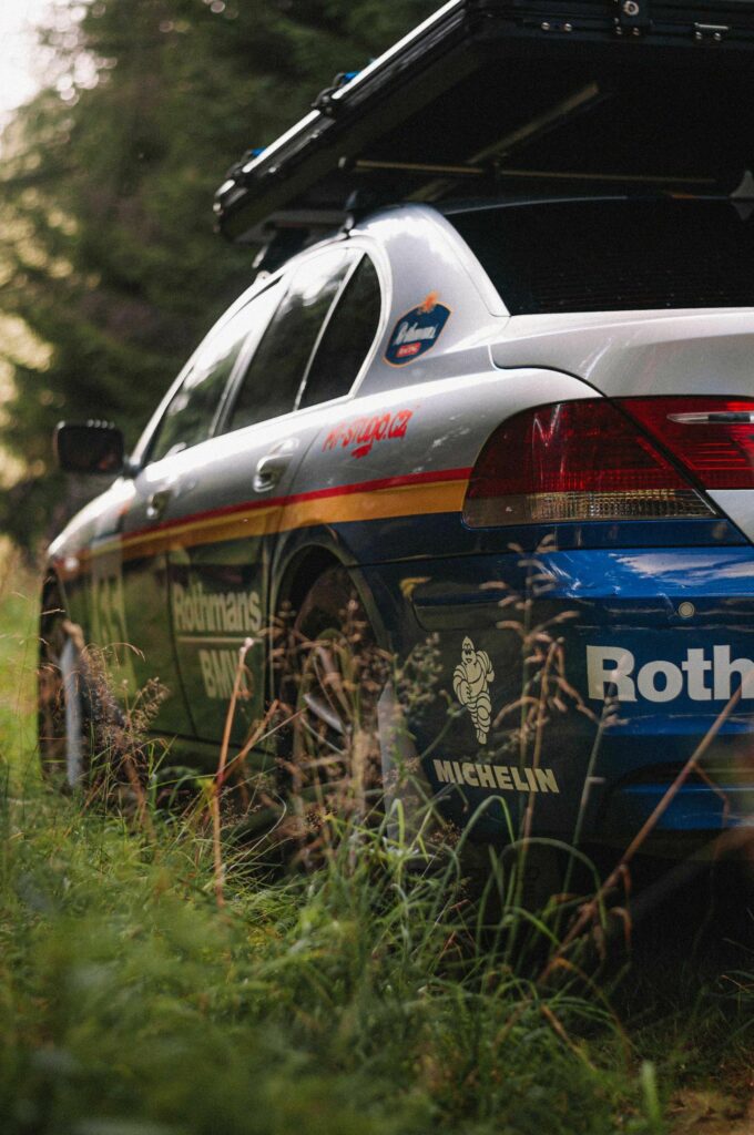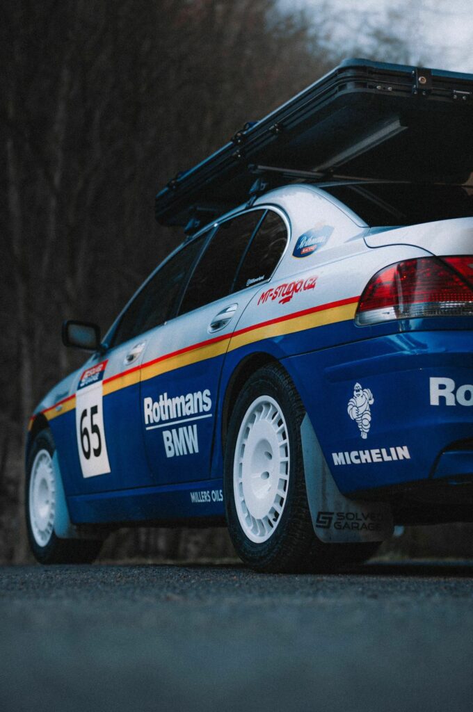 With its classic Rothmans livery, blending blue and silver tones with yellow and red graphics, the tuned E65 stands out from any other 7-Series. The inclusion of a roof tent and four more headlights placed in front of the kidney grille are two more visually noticeable changes. Furthermore, the daring BMW is equipped with a fresh set of rally-inspired alloy wheels that are shod with dependable Yokohama Geolander rubber.