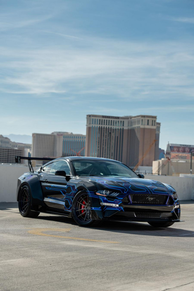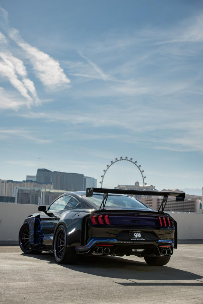 The new Widebody Ford Mustang is powered by V8 with a capacity of 5 liters, producing 700 hp. A Ford Racing compressor and a Bassani exhaust system help the engine reach this power.