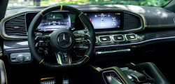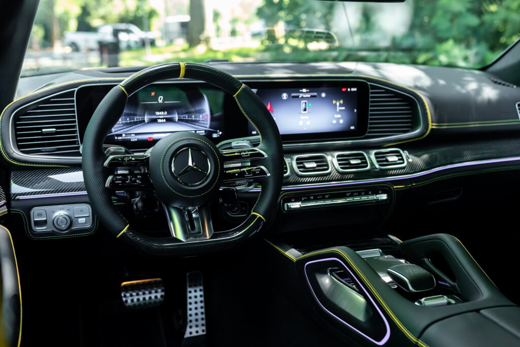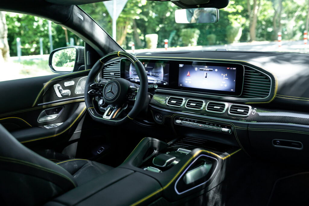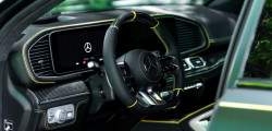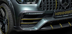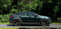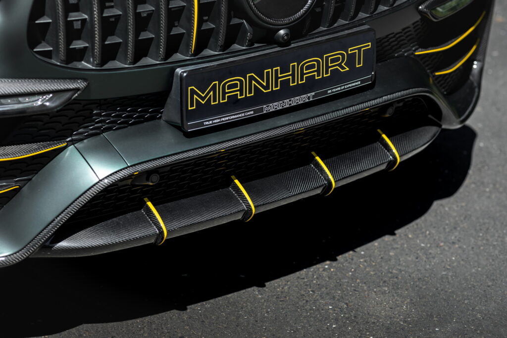 In addition to the lowered stance that Mercedes-AMG had already provided, Manhart adjusted the air suspension of the performance flagship of the GLE Coupe line, bringing it 1.2 inches closer to the ground. According to the tuner, new coupling rods might potentially reduce ground clearance to a comparable extent. Meanwhile, the interior has leather and Alcantara upholstery in black with yellow stitching, as well as carbon fiber elements,, and headrests and floor mats emblazoned with Manhart logos.