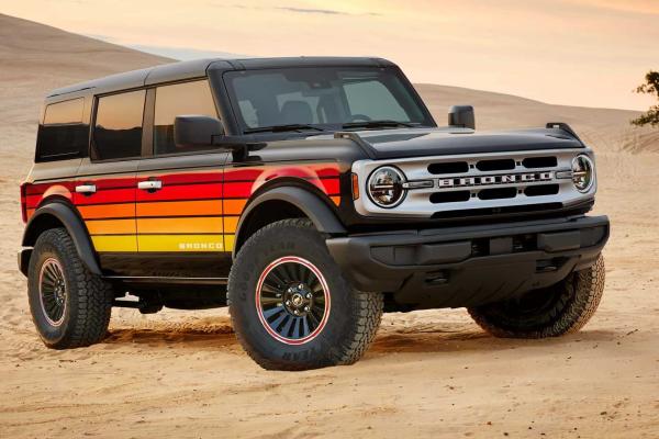 He highlights that Ford has modernized the new Free Wheeling package to match current fashion trends, incorporating seats that mirror the exterior stripes and distinctive pops of color that foster an upbeat, optimistic atmosphere. If you're dreaming of a Free Wheeling Bronco, you'll need to aim for the entry-level Big Bend trim. Ford hasn’t specified any exterior color restrictions, so with a palette of ten choices, it’s possible to create a striking Velocity Blue Bronco decked out in red, orange, and yellow stripes.