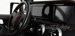 Likewise, the inside was completed in black leather with baseball stitching all around. A unique dash, four captain's seats, a built-in cooler, USB charging stations, headrest TV monitors, and a 14-speaker Focal sound system with Mosconi amps round out the features.