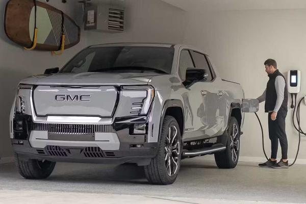 Thanks to the included CrabWalk mode, which allows the rear wheels to mimic the angle of the front wheels (ranging from 7 to 10 degrees, depending on the model), the GMC Sierra EV Denali Edition 1 should be capable off-road. Among its many opulent features are a fixed panoramic glass sunroof, open-pore wood trim, dark metal highlights, and Air Ride Adaptive Suspension.