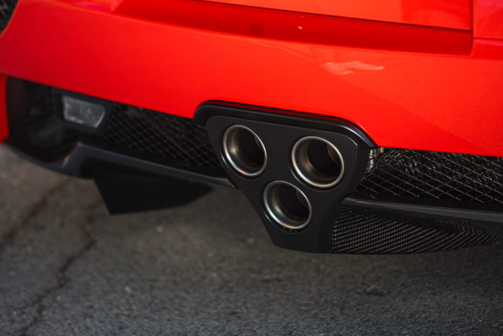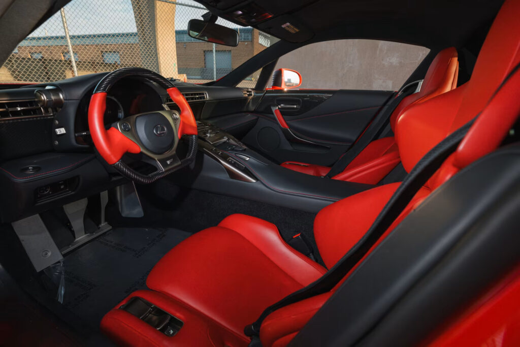 The bright red accents on seats, door pulls, and the leather-wrapped steering wheel add a touch of flair to the elegant design. Scheduled for auction at Mecum's 2024 Kissimmee event in Florida, this Lexus LFA, having appreciated in value over time, presents a tempting opportunity for collectors.