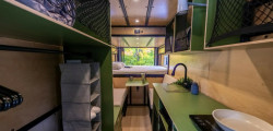 Inside, the possibilities are endless, including various bedding options, multiple seating arrangements, and a dinette. Choices extend to a queen-sized bed, seating for up to seven people, Starlink internet connectivity, a dry-flush toilet, and a kitchen complete with a sink, induction stove, and fridge. The G2 retains the powertrain from the Zevo 600, offering all-wheel drive and a 165 kWh battery pack, providing a range of over 250 miles!