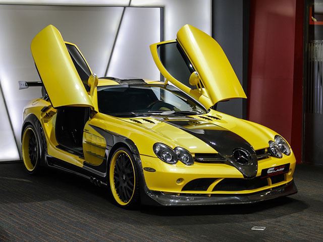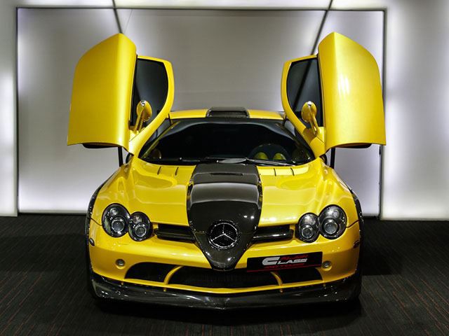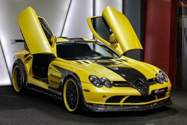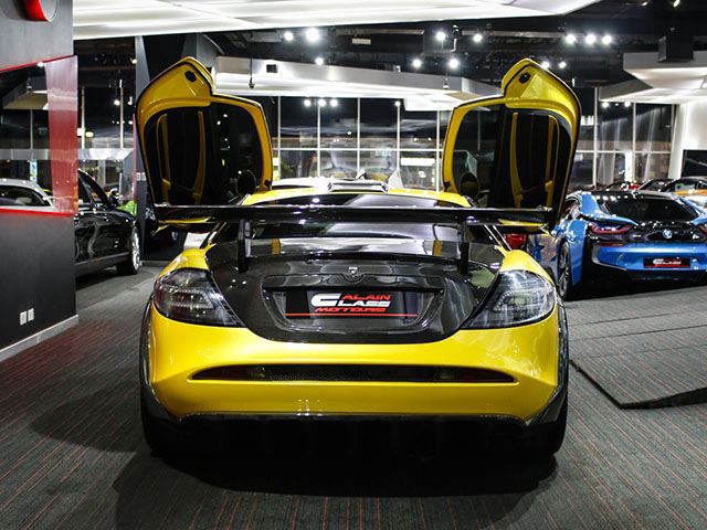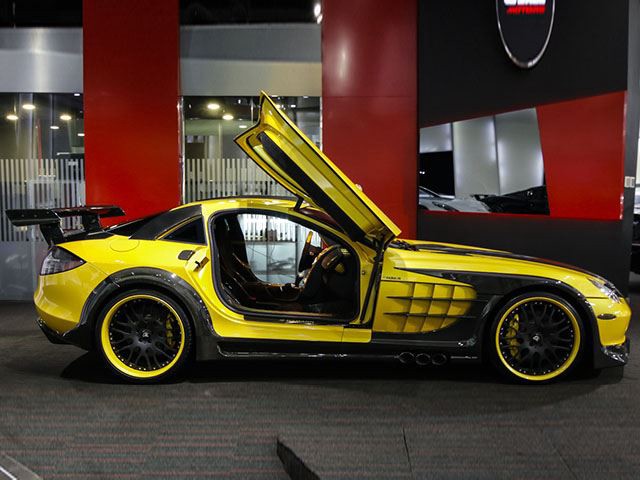 Hamman finished the SLR in bright yellow with visible carbon fiber. They increased the power to 700 hp which propels the supercar to 62mph in 3.6 seconds.