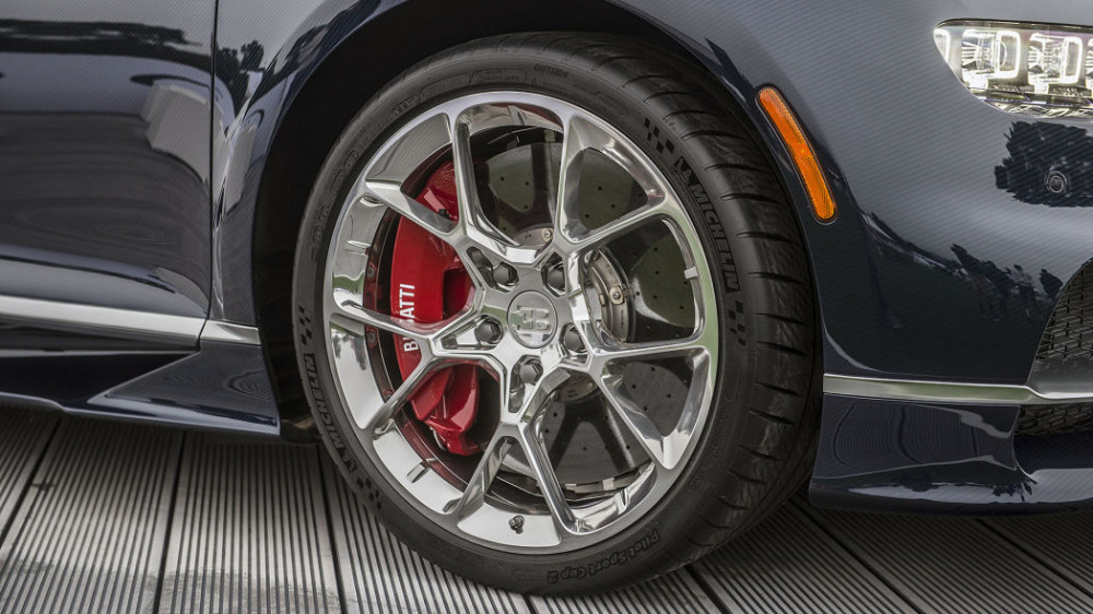 Chiron runs on 20-inch front wheels and 21-inch back wheels, dressed in Michelin Pilot Sports PAX tires and around 420 mm brake disks.