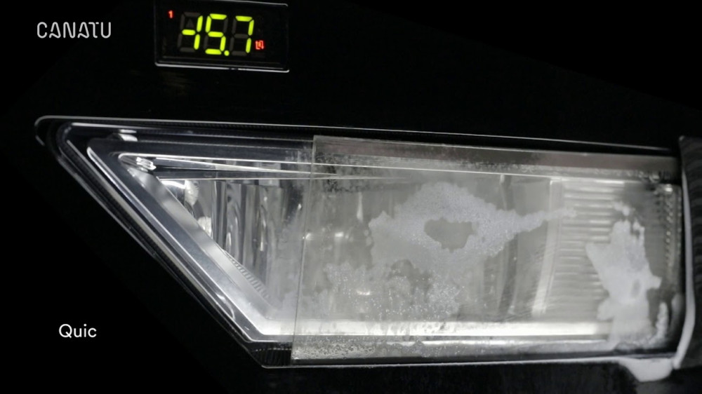 Just like headlamps the sensors used for assisted driving systems like adaptive cruise control can freeze up and stop working. Canatu found a clever solution - a film that goes over the headlights and clears away any winter debris.